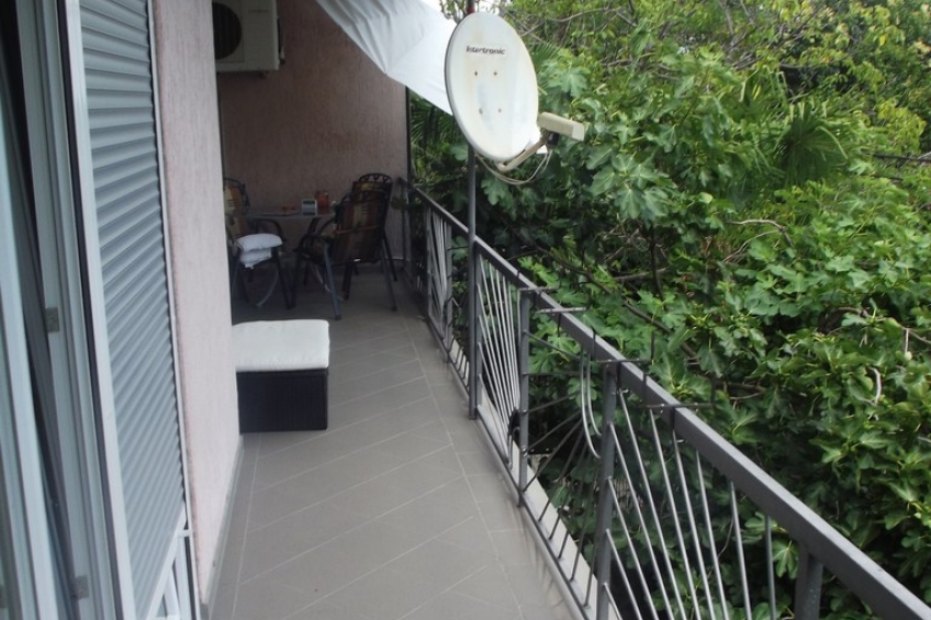 Uređena i namještena etaža na 1. katu privatne kuće sa natkrivenom terasom, potkrovljem, okućnicom i parkirnim mjestom. Mirno i tiho područje bez obzira da je blizu centra i mora. S balkona se pruža lijepi pogled na more.